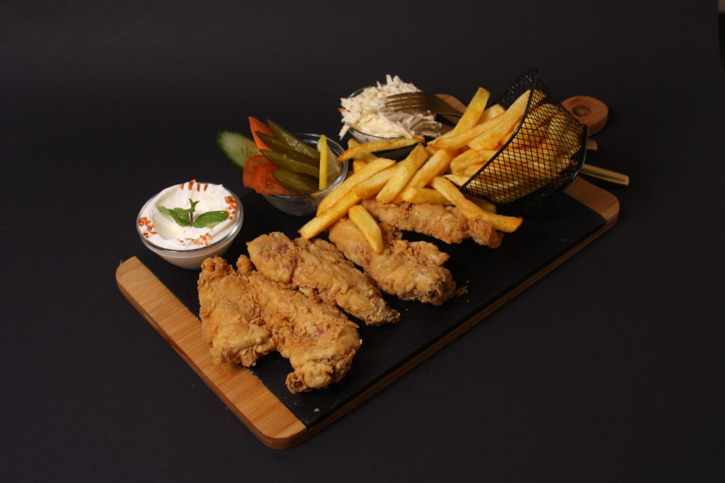 mit Hähnchenfleisch, Pommes